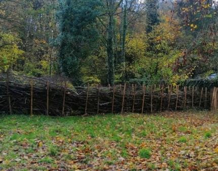 Les animaux sauvages, sangliers et chevreuils abiment souvent le potager et le verger de la maison. Pour les protéger, les bénévoles avec l’aide des scouts ont réalisé une haie morte : Entre deux rangées de piquets espacées d’environ 70 cm, on entasse des branches, rameaux, troncs fins, broussailles, récupérés sur place. Le label Église verte se décline en plusieurs niveaux.